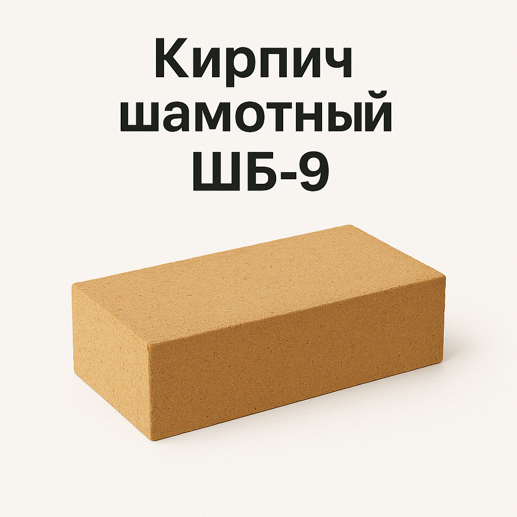 Кирпич шамотный ШБ-9 — прямой огнеупорный кирпич стандартного типа для кладки тепловых агрегатов, работающих при температурах до 1400 °C. Производится по ГОСТ 390–96 из огнеупорных шамотных масс на основе обожжённых глин и дроблёного шамота. Обладает высокой огнеупорностью, механической прочностью и устойчивостью к термоударам, что делает его универсальным материалом для футеровки промышленных печей и тепловых установок.