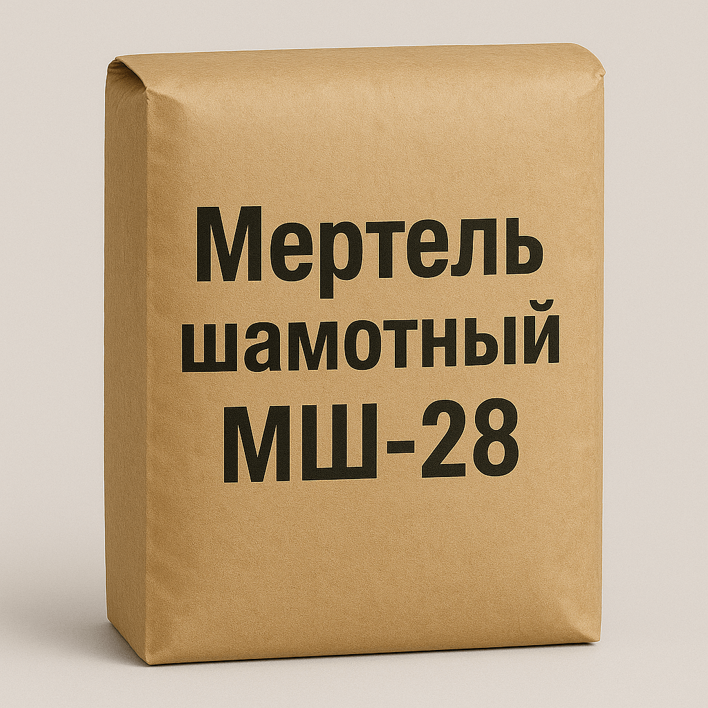Мертель шамотный МШ-28 — жаростойкий кладочный раствор на основе шамотного порошка и огнеупорной глины, предназначенный для монтажа и ремонта футеровок с рабочими температурами до 1500 °C. Обеспечивает надёжное сцепление огнеупорных изделий, устойчив к перепадам температур и агрессивным средам. Производится по ГОСТ 6137–2002 и применяется в промышленных тепловых агрегатах.