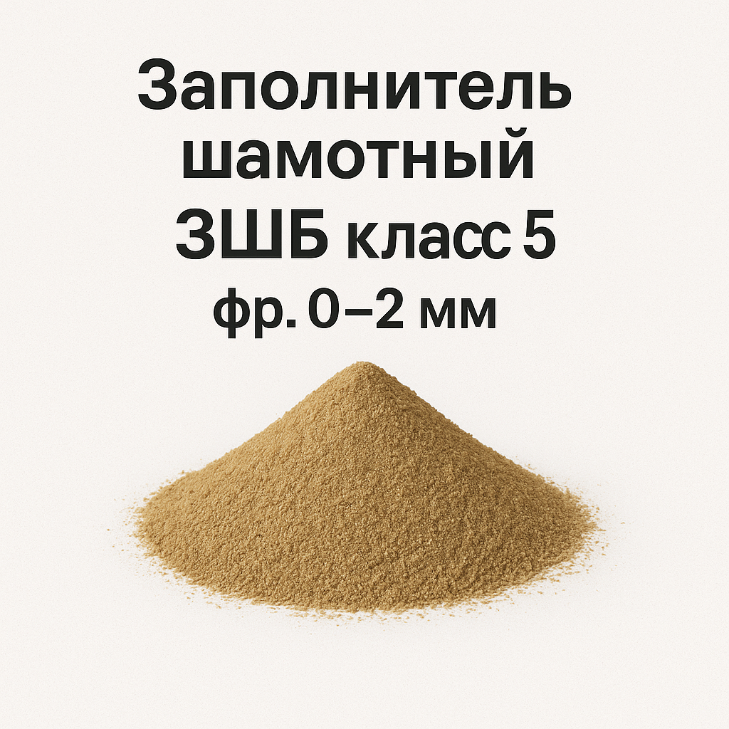 Заполнитель шамотный ЗШБ класс 5 (фр. 0–2 мм) — мелкодисперсный термостойкий порошковый материал, используемый как наполнитель в жаростойких бетонах, мертелях и кладочных смесях. Производится из обожжённого шамота по ГОСТ 23037-99, обладает высокой химической стойкостью, чистотой и стабильными физико-механическими характеристиками. Тонкая фракция обеспечивает плотное заполнение структуры и повышенную прочность готовых составов.